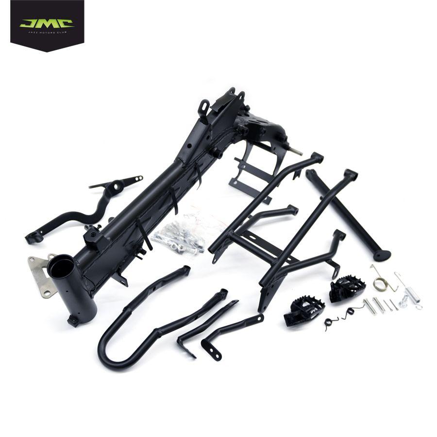 Рама тип KLX. В комплекте: рама, подрамник, усилитель крыла, кронштейн подножек, подножки с креплениями, боковая подставка, пружина боковой подставки, тормозная ножка, пружина тормозной ножки,  комплект крепежа,
